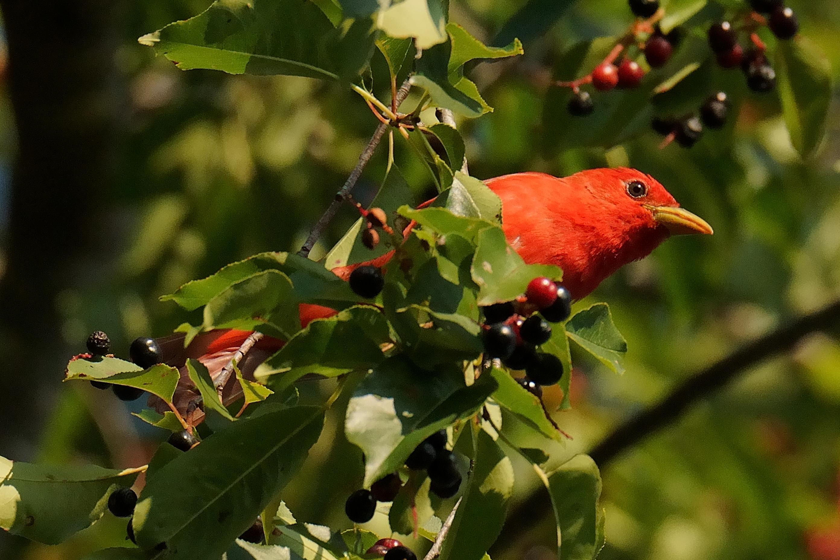 "content": "Summer Tanager, black cherries\n\n#birds #wildlife #nature #photography\n\nhttps://files.mastodon.online/media_attachments/files/114/905/258/749/806/344/original/1cc87a38c1a6b60f.jpeg",
