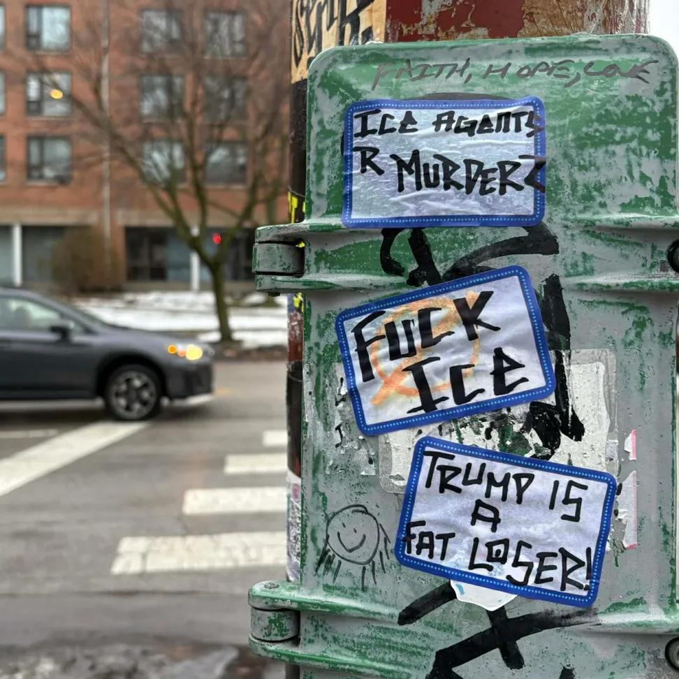 Anonymous ποΈπΎβπ΅π΄π΅πΈ :af: on Nostr: Anti-ice & anti-Trump stickers seen along Sheridan Rd in Rogers Park, Chicago ...Anti-ice & anti-Trump stickers seen along Sheridan Rd in Rogers Park, Chicago#FuckICE